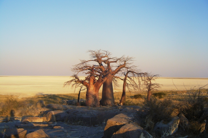 Fossile Insel in den Salzpfannen Botswana. Heiliger Ort. Uralte Affenbrotbaueme. Nur Camping fuer Selbstversorger oder von Veranstaltern organisierte mobile Safaris. Nur zur Trockenzeit empfehlenswert. Lodge/Unterkunft Kubu Island Campsite Aktivitäten Spaziergaenge um & auf der Insel
