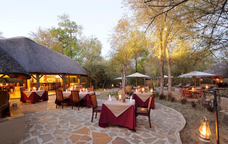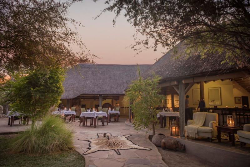 Lodge im traditionellen Stil im privaten Onguma Game Reserve im Osten des Etosha Nationalparks. Lodge/Unterkunft Onguma Forest Camp, Namibia Aktivitäten Safarifahrten Bushwanderungen